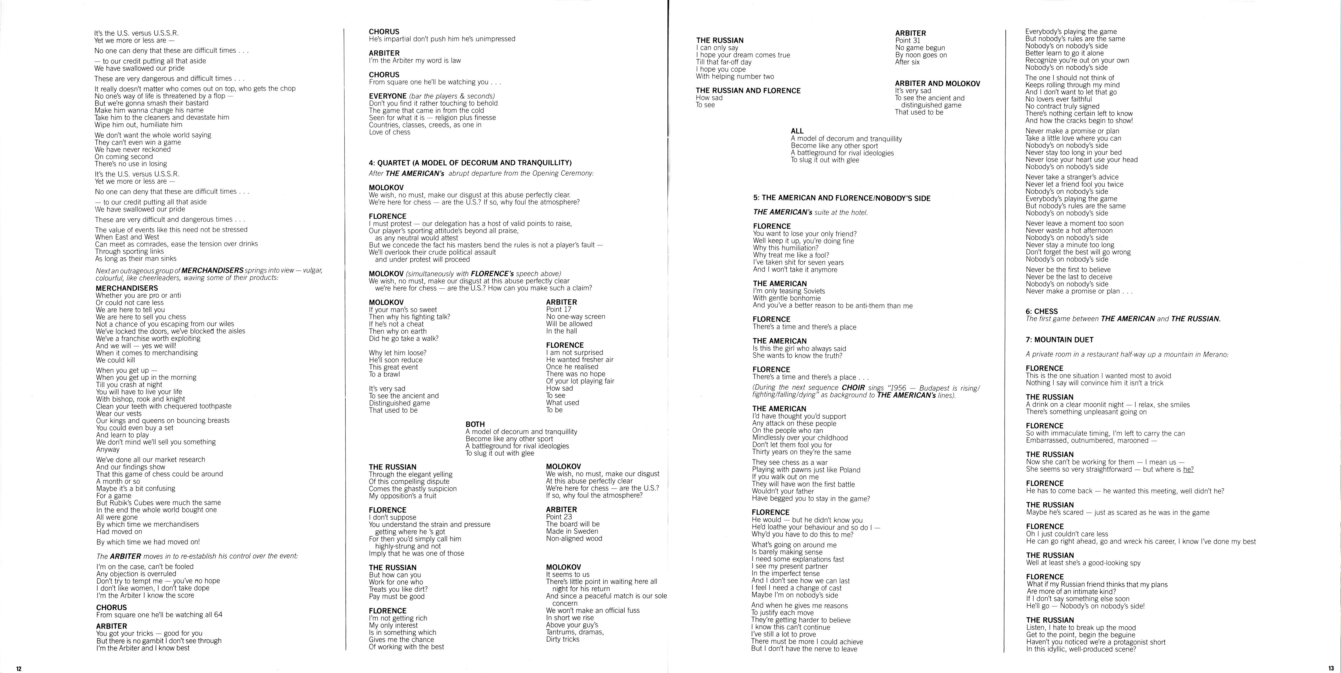 Мюзикл называют метафорой «холодной войны», с намёком на то, что «холодная война» сама по себе являлась манипулятивной игрой. На фоне сюжета о любви и ревности он высмеивает напряжённость и враждебность международной политической атмосферы начала 1980-х годов.