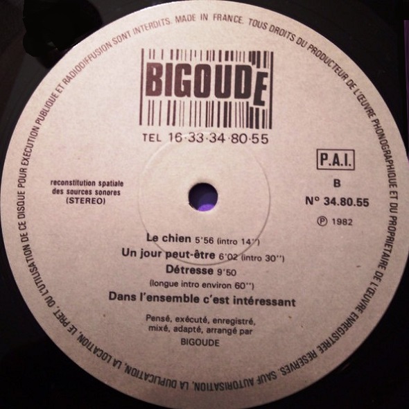 BIGOUDE (France) - "Bigoude" (1982) - благодаря усилиям помощников-энтузиастов, в приемлемом виде добыт (выпрошен/выменен у одного из двух обладателей рипа на ресурсе Discogs.com) данный редкий, становящийся настоящей реликвией, забытый и затерянный релиз.