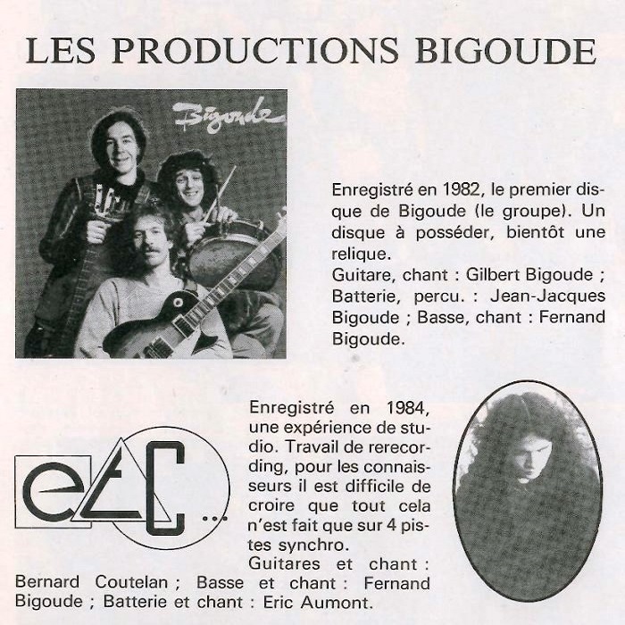 Помимо самостоятельного выпуска очень редкого одноимённого альбома, группа BIGOUDE засветилась ещё на компиляции французского рока и панка «L'Aigle En Musique», 1985 года, с композицией «Métro», не вошедшей в их LP.