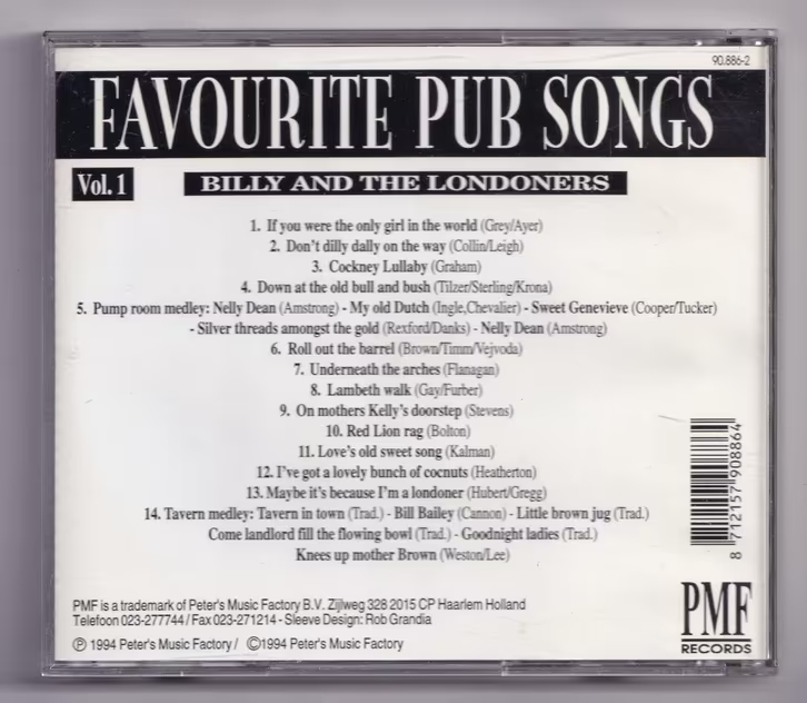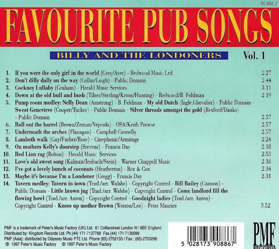 «Billy And The Londoners - Favourite Pub Songs Vol. 1» — CD-альбом Billy And The Londoners 1994 года, выпущенный лейблом PMF Records, включающий в себя коллекцию классических британских и кокни-песен в стиле паб, а также попурри. В трек-лист альбома входят такие популярные композиции, как «Roll Out The Barrel», «Underneath The Arches», «Lambeth Walk», «I've Got A Lovely Bunch Of Coconuts» и «Maybe It's Because I'm A Londoner».