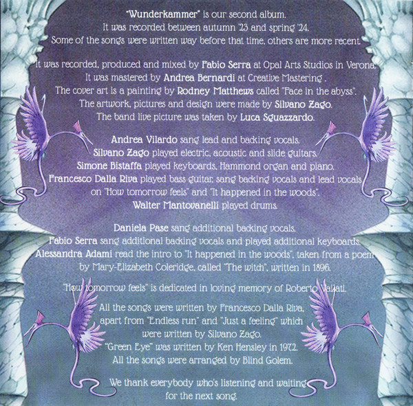 После нескольких выступлений, включая престижное выступление на фестивале Porto Antico в Генуе, группа вошла в студию, чтобы записать свой альбом оригинального материала, продемонстрировав явный рост индивидуальности, по-прежнему сохраняя прочные корни в классическом, мощном и мелодичном звучании первого альбома. Как дань уважения, на альбоме представлен сильный кавер на самую малоизвестную глубокую композицию Uriah Heep “Green Eye”, отрывок из классических сессий “Demons and Wizards” 1972 года. Оформлением конверта занимался ни кто иной, как легендарный Родни Мэтьюз, ответственный за бесчисленное количество классических обложек для таких групп, как Thin Lizzy, Nazareth, Magnum, Diamond Head и т. д. Все участники Blind Golem — выходцы из опытных групп, выпустившие несколько альбомов с Bullfrog, Rocken Factory и Forever Deep, а также отыгравшие тысячи концертов на протяжении многих лет, поддерживая таких легенд рока, как Don Airey, Roger Glover, Ian Paice, Bernie Marsden и выступая на разогреве. для Uriah Heep, John Lawton, Uli Jon Roth, Dan Baird, Doug Pinnick. Как и первый альбом, "Wunderkammer" выпущен на лейбле Andromeda Relix Records.