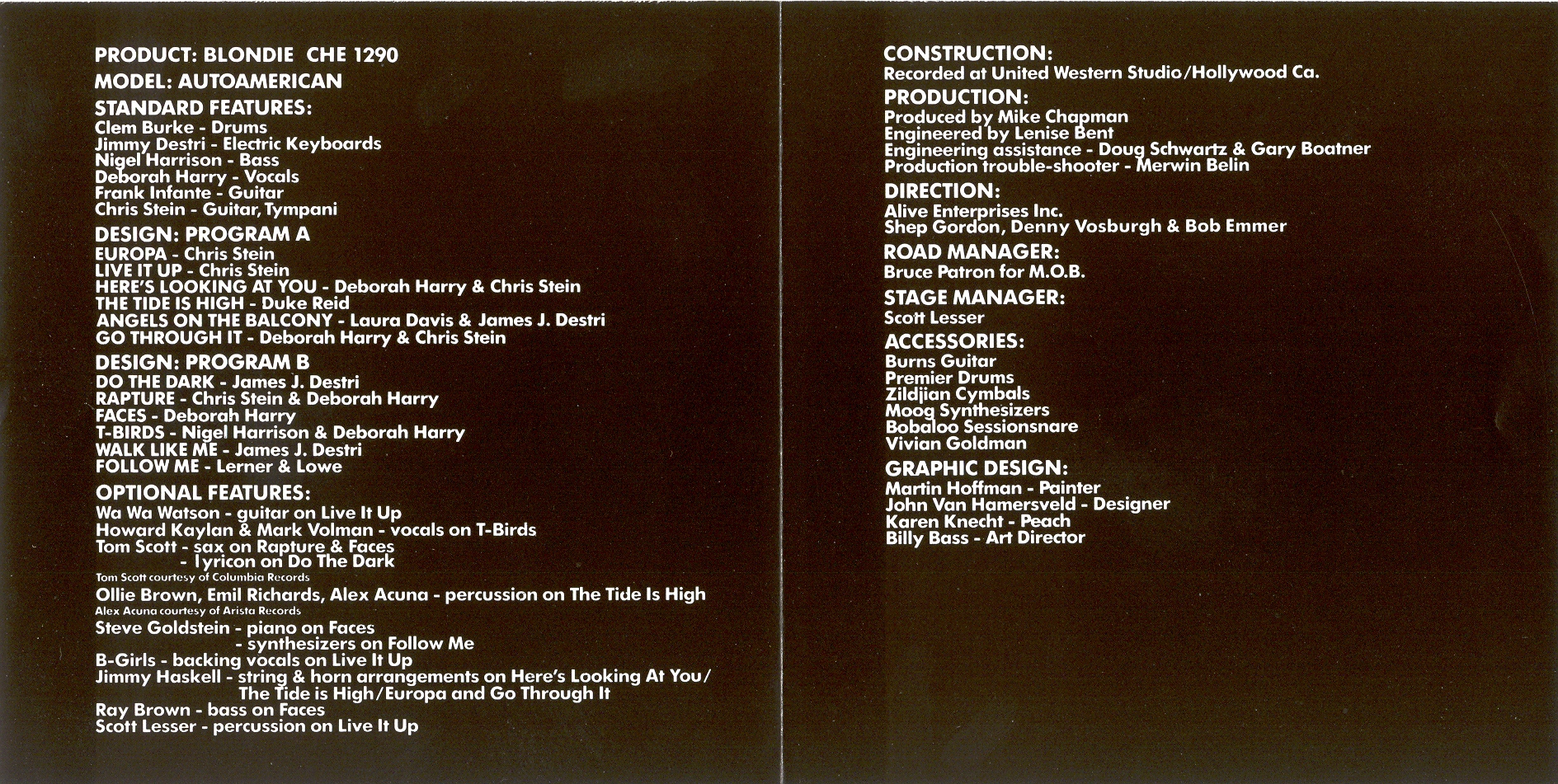 AutoAmerican - пятый студийный альбом American Rock Band Blondie. Он был выпущен в ноябре 1980 года и достиг № 3 в британских чартах, № 7 в США и № 8 в Австралии. Альбом породил два сингла, «The Tide is High» и «Rasture». «The Tide is High» в нескольких странах, в том числе в США и Великобритании. «Rasture» стала первой рэп-песней, которая достигла номер один в таблице синглов в США. Он также достиг пятого в Великобритании и номер четыре в Австралии.
