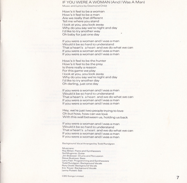 2 Bonnie Tyler– If You Were A Woman (And I Was A Man) 5:15