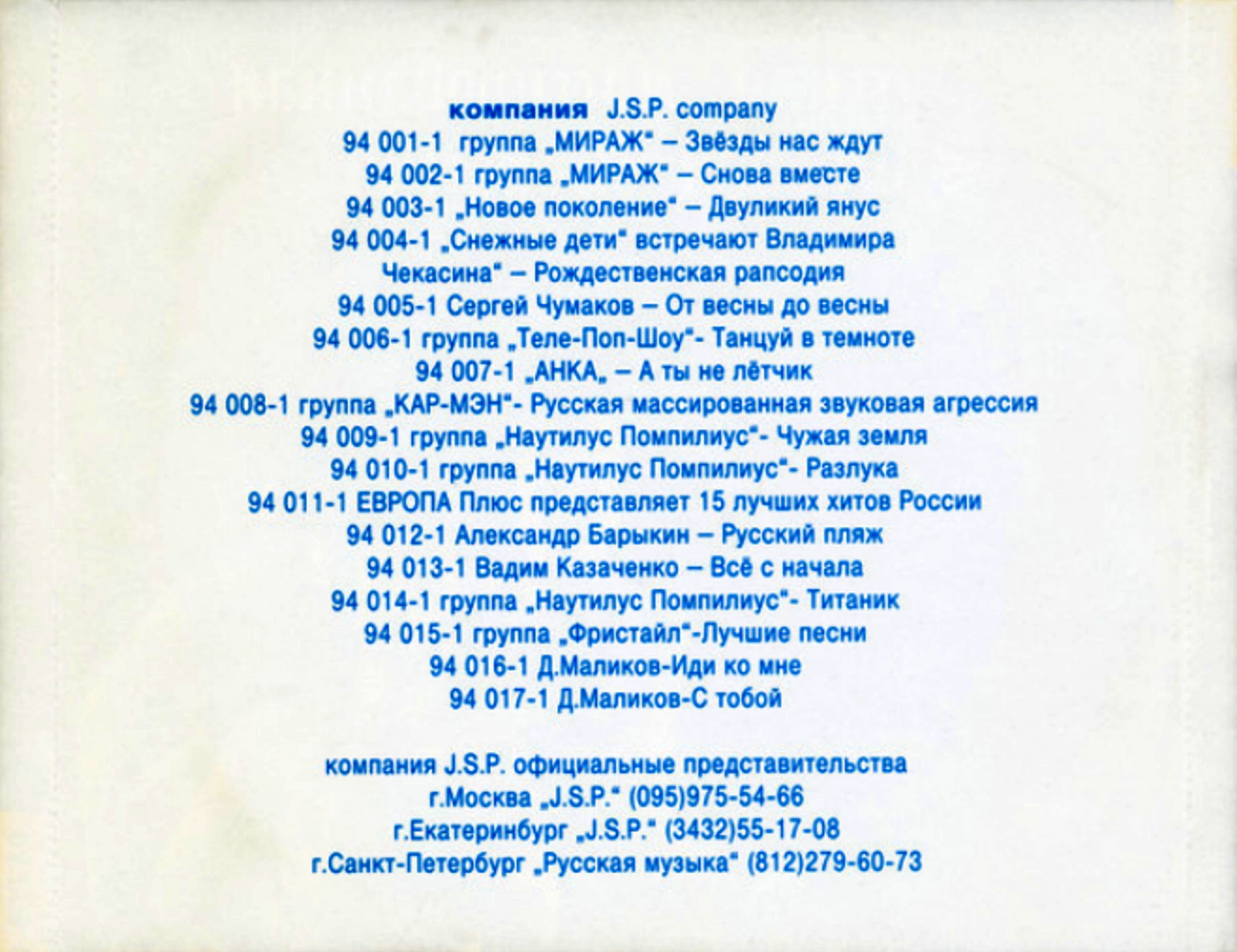 Лейбл: J.S.P. 94 008-1, J.S.P. 94008-1