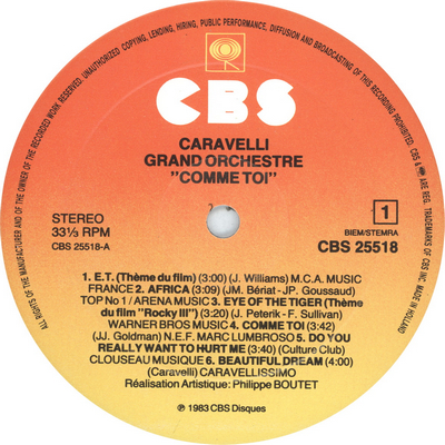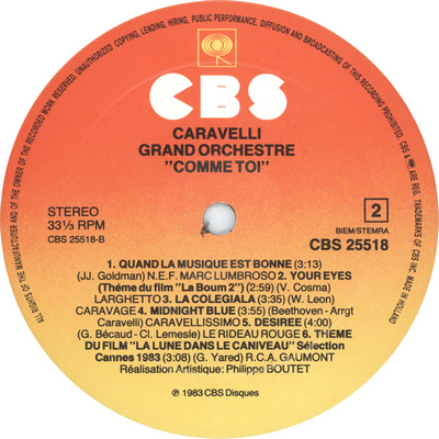 "Quand La Musique Est Bonne", сейчас они найдены. А еще один трек - "Désirée" был там представлен в виде совершенно другой мелодии. Вполне возможно у Каравелли имеются 2 разные композиции с одинаковым названием, но к данному альбому относится та, которая была сюда загружена только что.