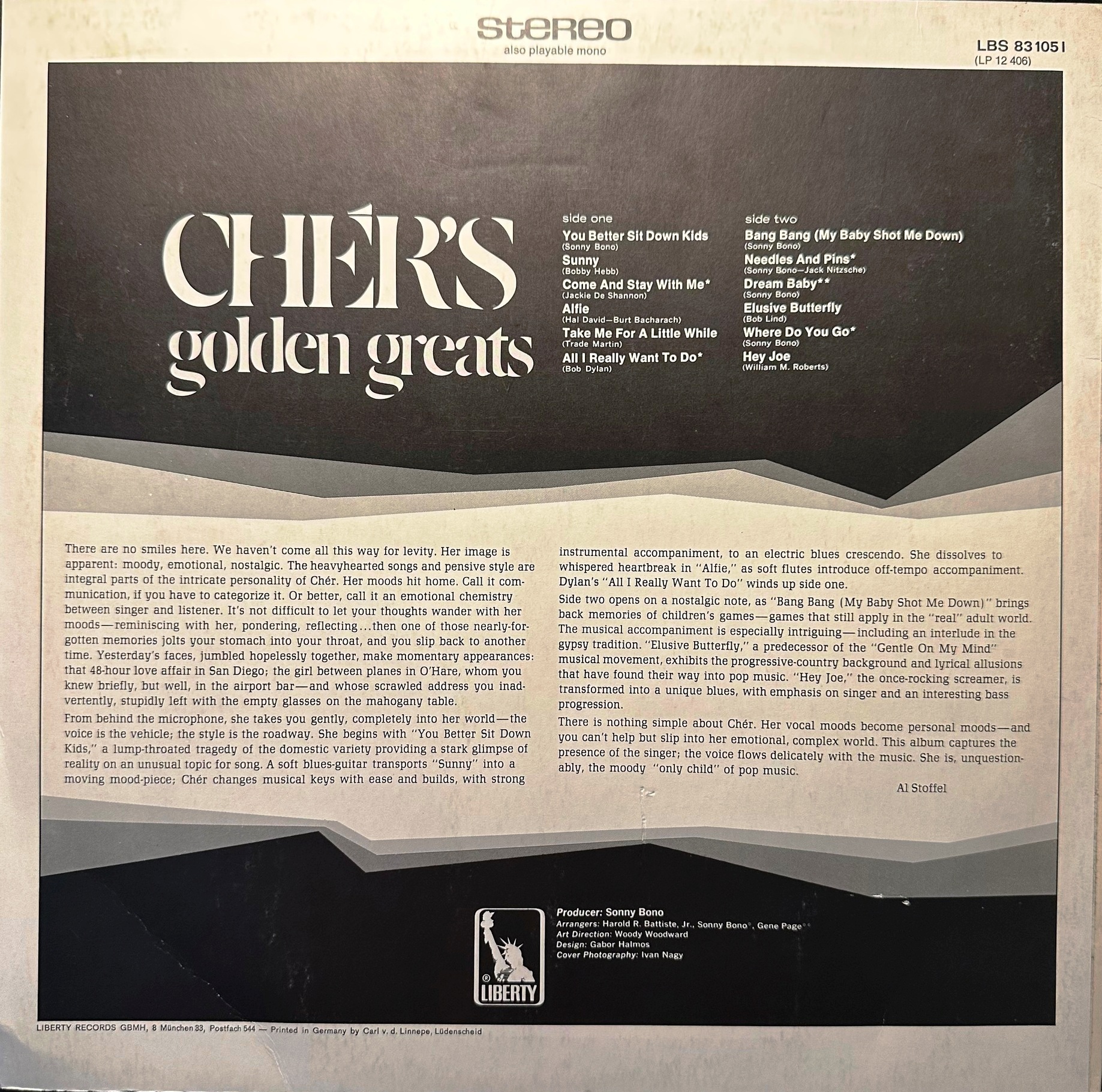 Golden Greats Chers - первый сборник Американской певицы-актрисы Шер, выпущенный в 1968 году Imperial Records и Liberty Records. Альбом достиг 195 строчки в чарте Billboard 200 США и был выпущен в рамках контракта с Imperial Records и Liberty Records.