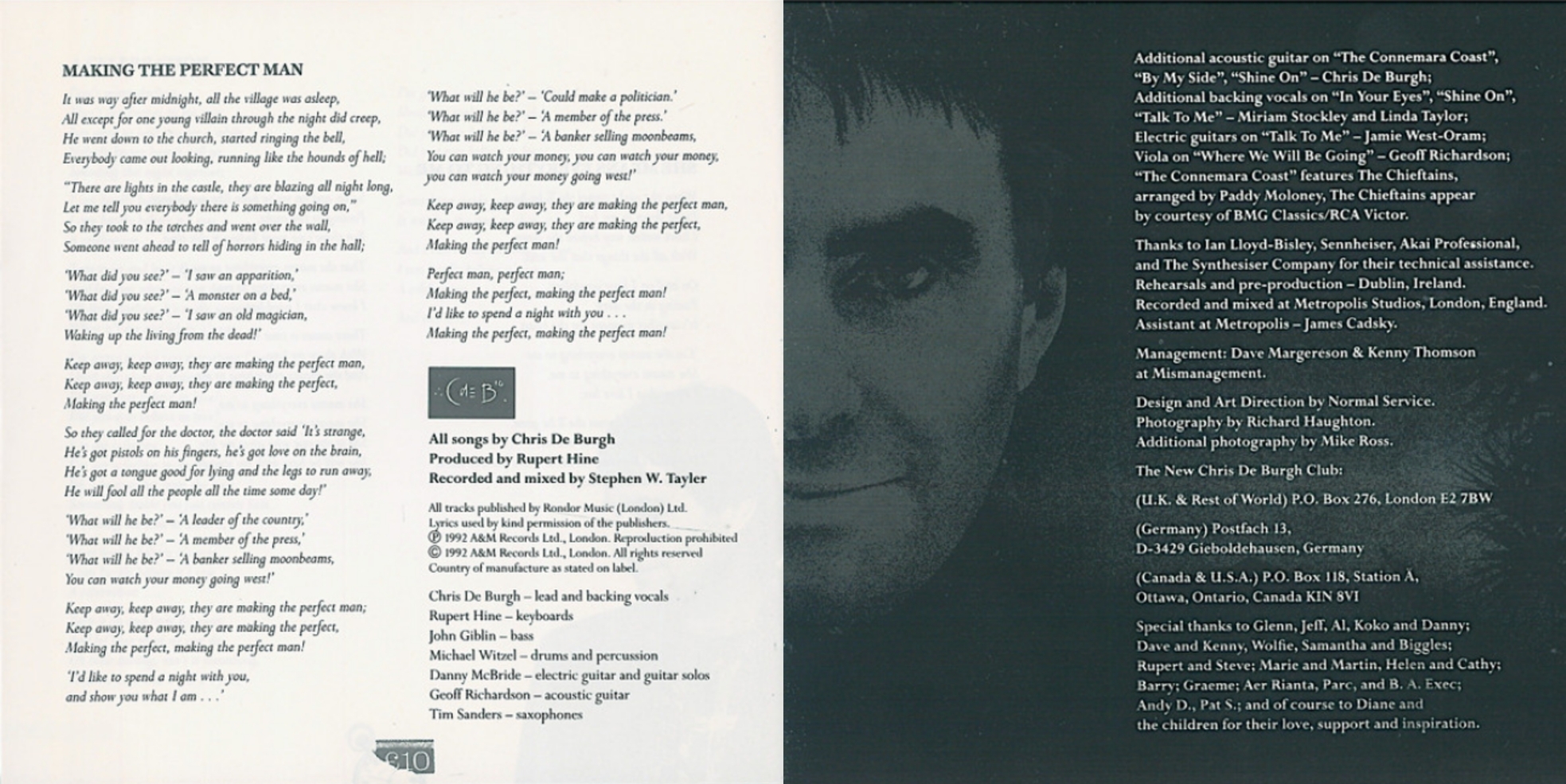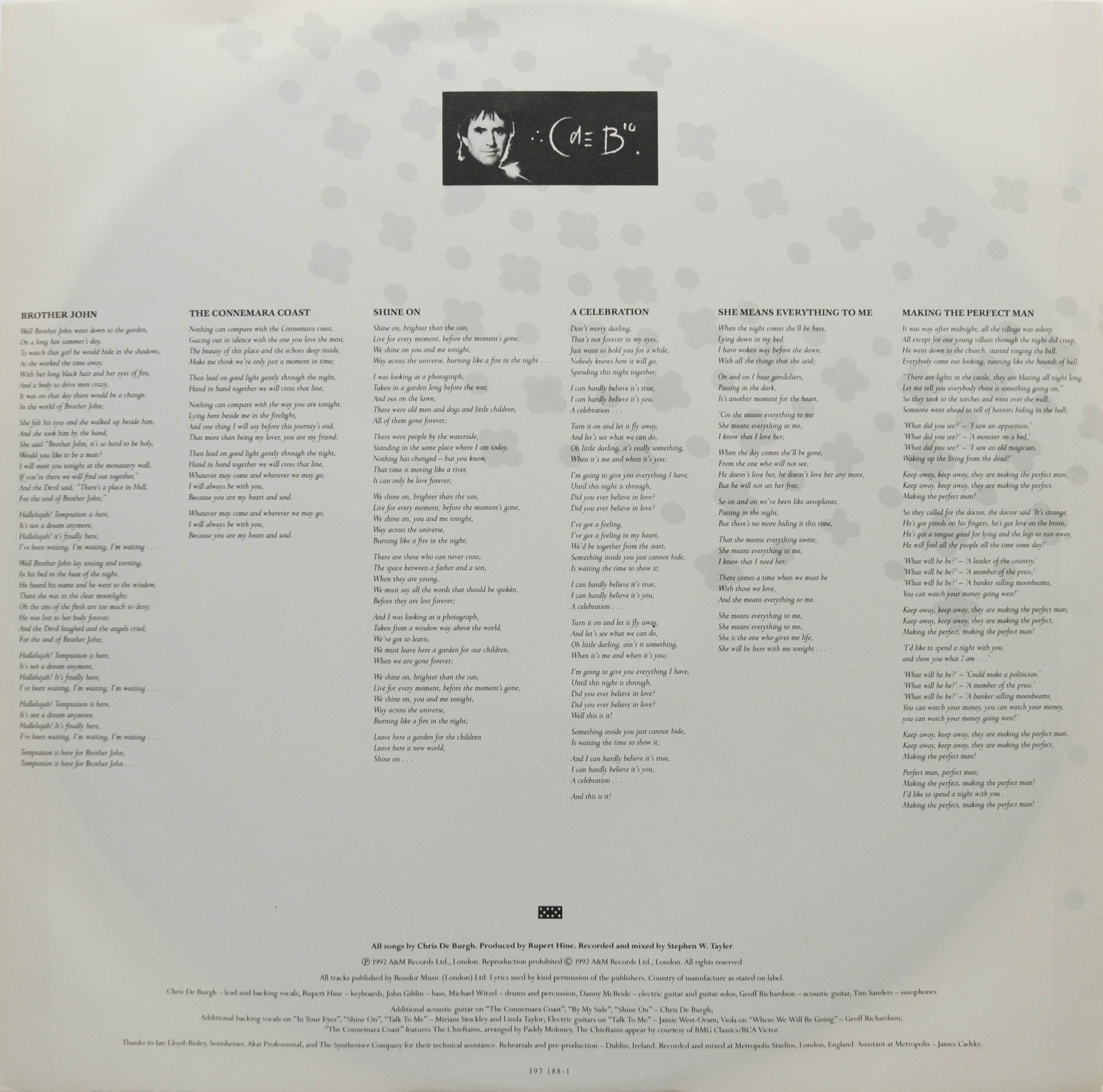 • Chris de Burgh – lead vocals, backing vocals, additional acoustic guitar (A2, B2, B3)