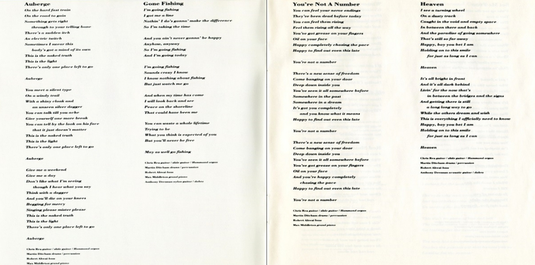 This release is the corresponding UK & Europe release Chris Rea - Auberge,