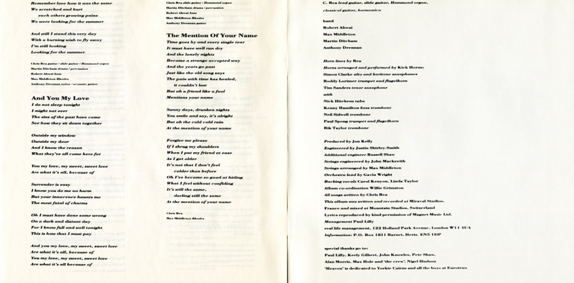 Lead Guitar, Slide Guitar, Organ [Hammond], Classical Guitar, Harmonica, Vocals – C.Rea