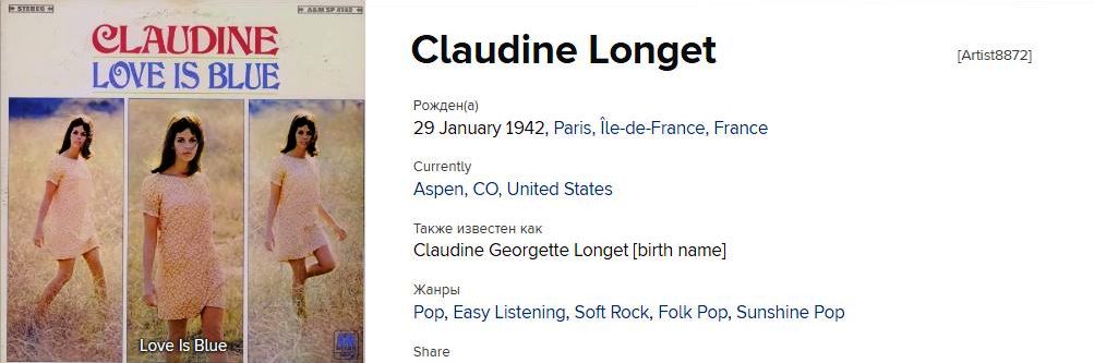 Клодин Жоржетт Лонже - французская актриса и певица, родилась в Париже 29 января 1942 года.