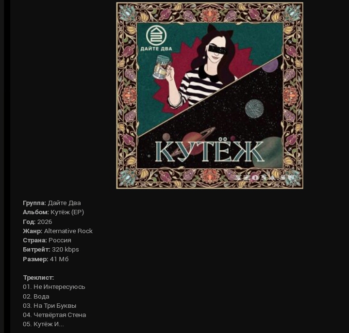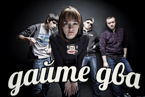 Дайте два – российский рок – коллектив, основанный в 2007 году в Москве и Санкт – Петербурге. Музыканты исполняют песни в жанрах поп – рок, альтернативный рок, панк – рок и элит – кор. За время существования группы её состав неоднократно менялся. Сегодня в группе играют Людмила Махова (вокал), Алексей Архангельский (гитара), Виктор Раевский (бас – гитара), и Константин Овчинников (ударные). Стиль группы «Дайте Два» можно определить как сочетание энергичного альт-рока, элементов rap-core и интеллектуальных, но хулиганских текстов, способных восхитить литературоведа и озадачить филолога. Со словом в «Дайте Два» работает вокалистка Людмила «Тёща» Махова — переводчик-лингвист и профессиональная скрипачка, играющая на инструменте с 4-х лет. В ее текстах уживаются и агрессия контркультурной прозы, и утонченность поэзии серебряного века, и языковые поиски формализма.