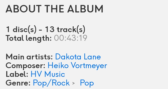 Кто стоит за этим альбомом? Dakota Lane — белорусская певица, композитор и текстовик. С юных лет она музицировала для себя и друзей, была вокалисткой панк-группы, участвовала в "Фабрике Звёзд", а сегодня известна как яркая исполнительница нового попа с философским посылом, регулярно пишет музыку для себя, других артистов и кино.