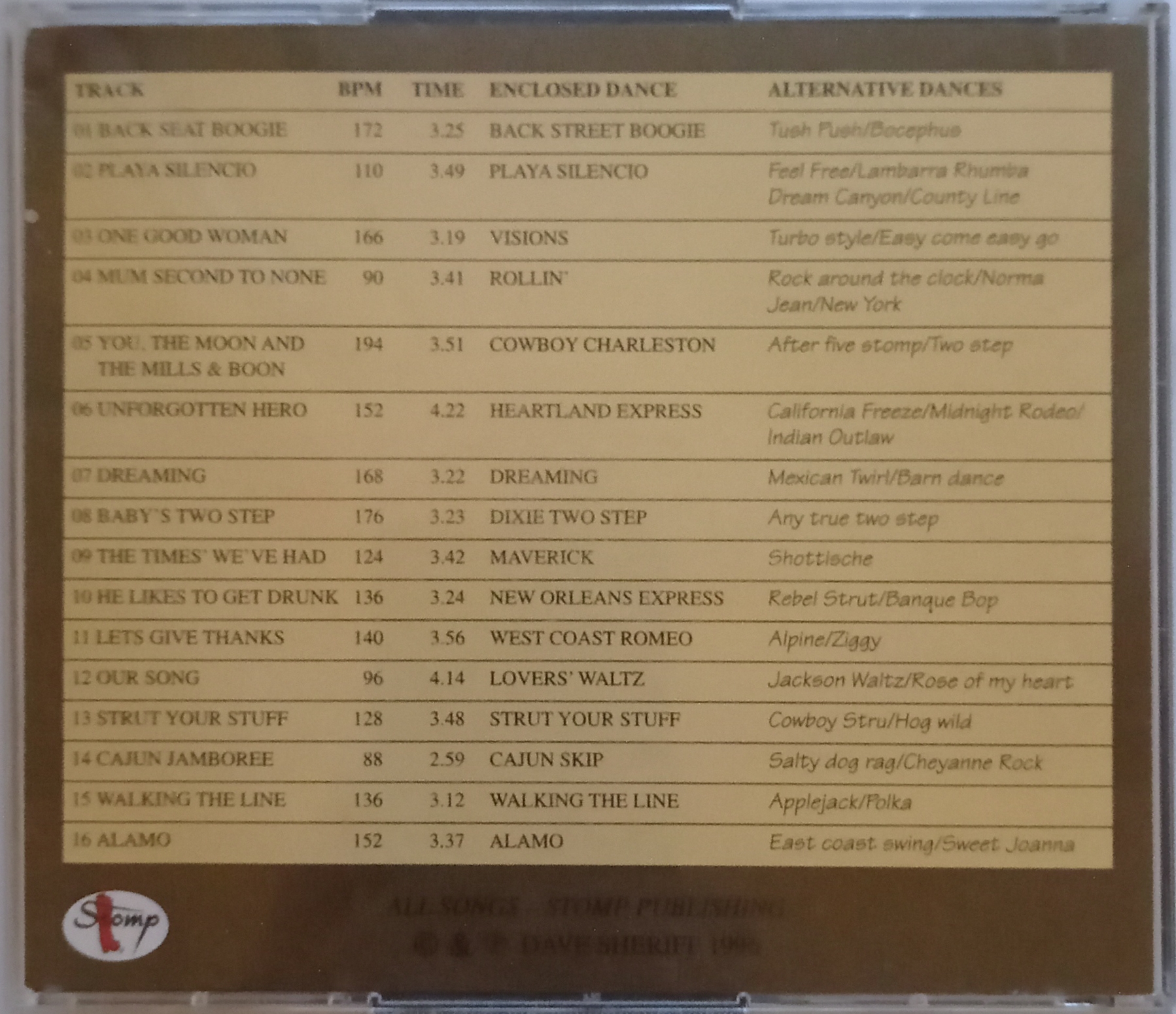 1 Back Seat Boogie 2 Playa Silencio 3 One Good Woman 4 Mum Second To None 5 You, The Moon And The Mills & Boon 6 Unforgotten Hero 7 Dreaming 8 Baby's Two Step 9 The Times' We've Had 10 He Likes To Get Drunk