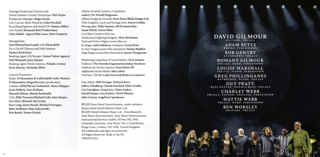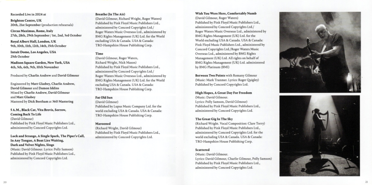 Издание на 2CD. Включает 24-страничный буклет с фотографиями с тура. Продюсеры Чарли Эндрю и Дэвид Гилмор.