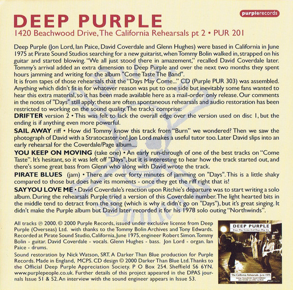 Deep Purple – 1420 Beachwood Drive (The California Rehearsals Pt 2) (2000)