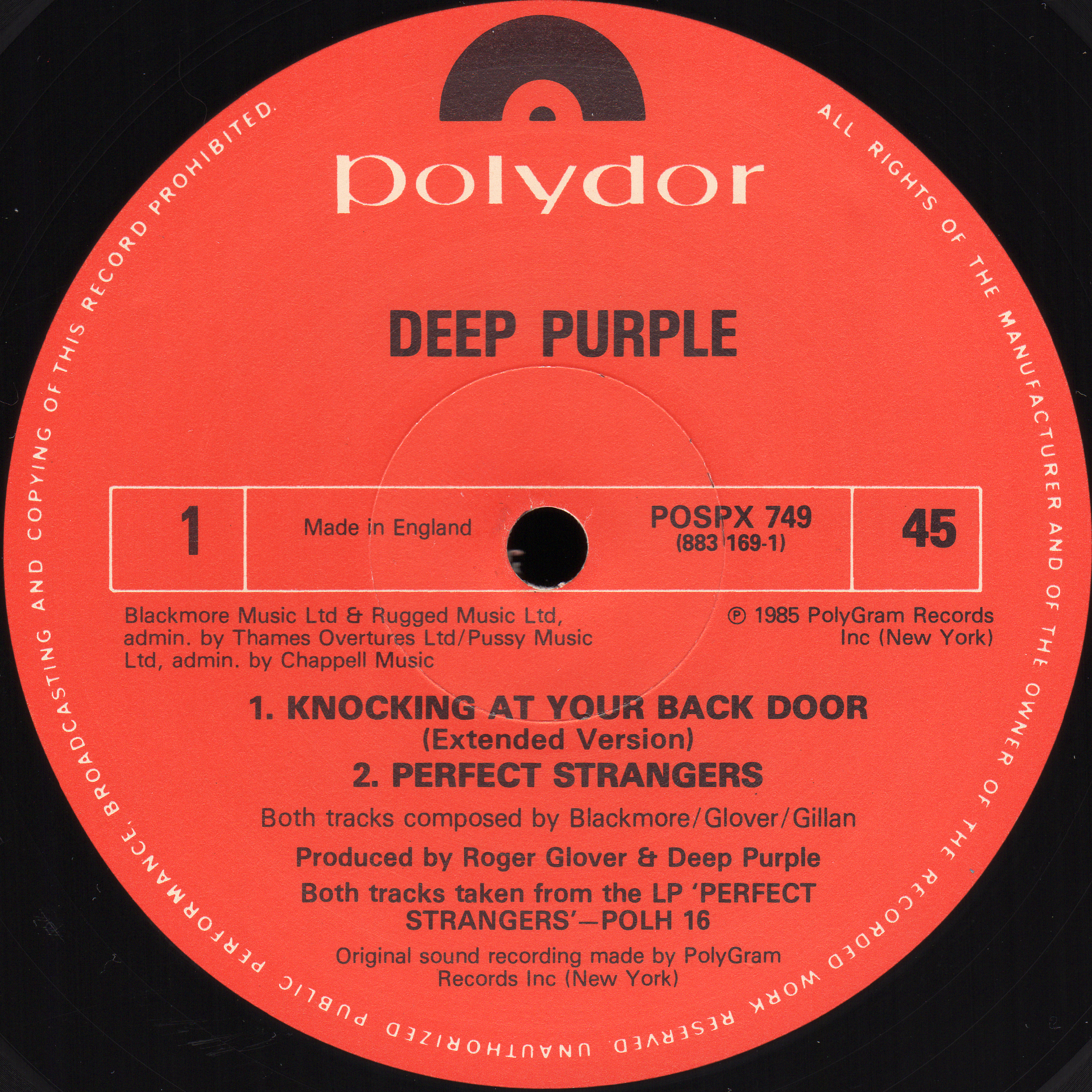 • (01,02) Оба трека с альбома Polydor Deep Purple - "Perfect Strangers". на 45 RPM
