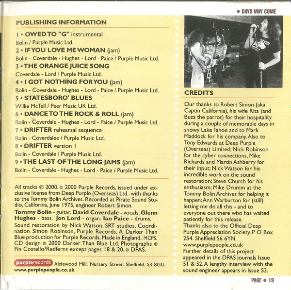 Deep Purple – Days May Come And Days May Go (The California Rehearsals • June 1975) (2000)