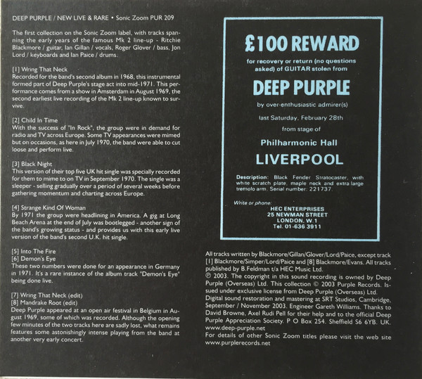 Bass – Roger Glover Drums – Ian Paice Guitar – Ritchie Blackmore Keyboards – Jon Lord Vocals – Ian Gillan Engineer – Gareth Williams (3) Design – Darker Than Blue Ltd.