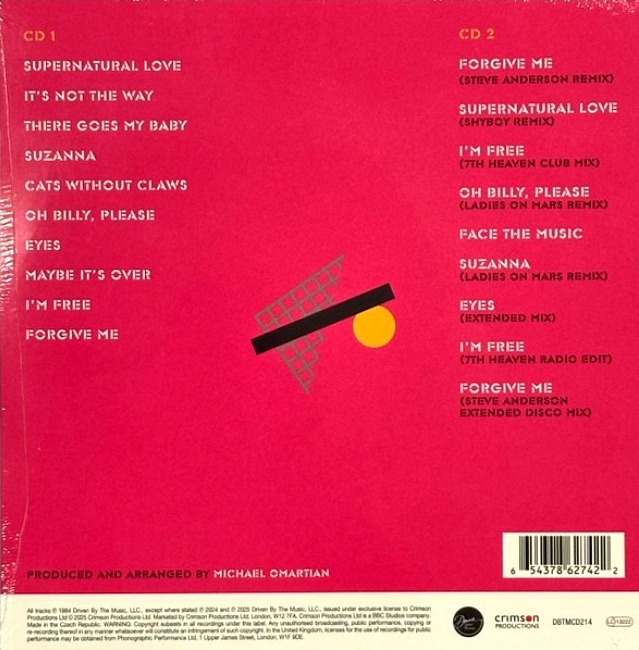 To celebrate the album's 40th Anniversary, "CATS WITHOUT CLAWS" has received a reawakening, with five tracks being remixed for this milestone release. Steve Anderson (Kylie Minogue/Britney Spears/Brothers In Rhythm/Claire Richards/Delta Goodrem/Take That/Westlife), 7 th Heaven, Ladies On Mars and ShyBoy (Hollywood Music In Media Award 'Best Male Vocal' on Hypnogaja's version of Donna's 'On The Radio'), all add a special spark and contemporary gloss to half of the Album. This newly mastered 2CD set is beautifully packaged in a 7" Deluxe Gatefold sleeve with Booklet, also contains the non-Album 'b'-side 'Face The Music', as well as the original 'Eyes' [Extended Mix], lyrics, a newly authored 6,000+ word essay by noted US writer Christian John Wikane, featuring new and his own archive interviews conducted with Album Producer Michael Omartian, designer Jeff Fey, Video Director Ian Leech, John 'Jellybean' Benitez, Reba Rambo and Bruce Sudano. The essay also includes contributions from the four Producers.
