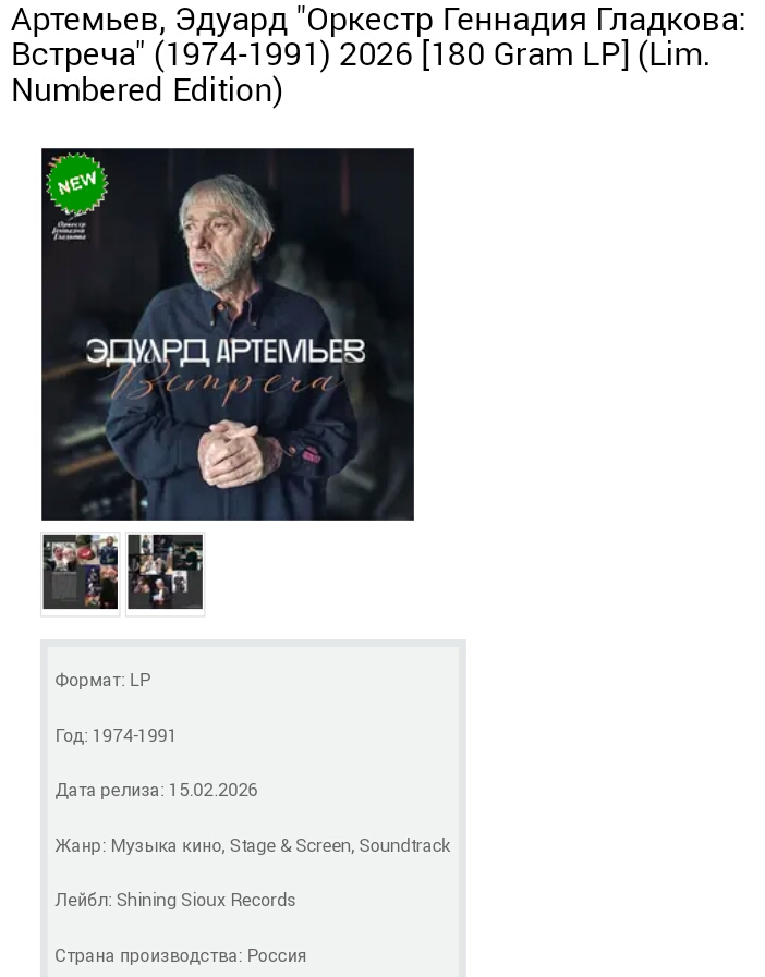 Эдуард Артемьев, Оркестр Геннадия Гладкова - Встреча (Винил) 2026