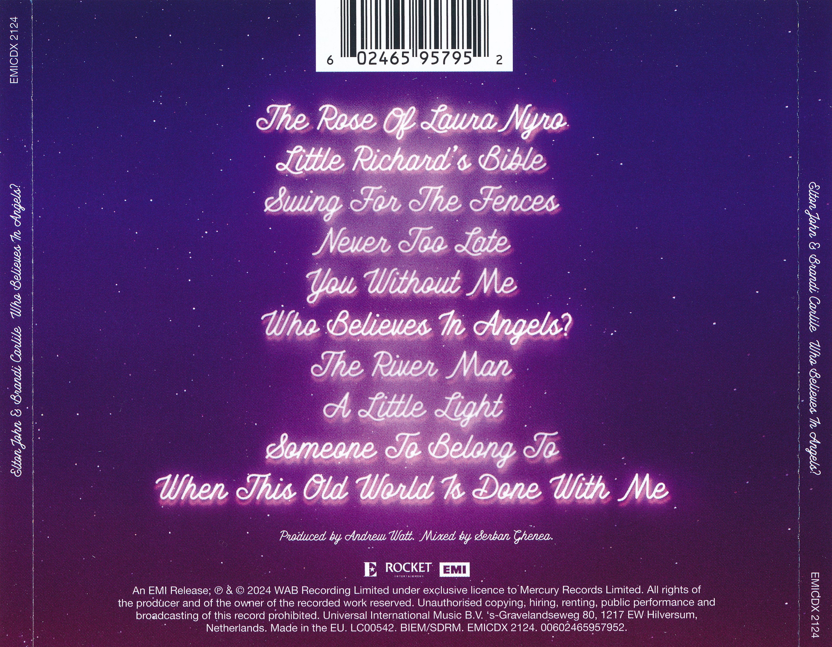 Who Believes in Angels? (Кто верит в ангелов?) - это совместный студийный альбом английского музыканта Элтона Джона и американского музыканта Брэнди Карлайл. Он был выпущен 04 апреля 2025 года через Interscope Records. Альбом продюсирован Эндрю Уоттом и был записан на Sunset Sound Recorders в Лос-Анджелесе. Запись была объявлена 05 февраля 2025 года, наряду с выпуском его заглавного трека. Это тридцать третий студийный альбом Джона и восьмой Carlile.