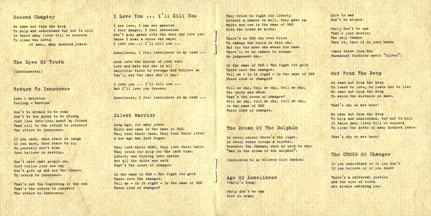 Recorded with the big help and support of E-Magic and Euphonix at A.R.T. Studios, Ibiza/Spain.
