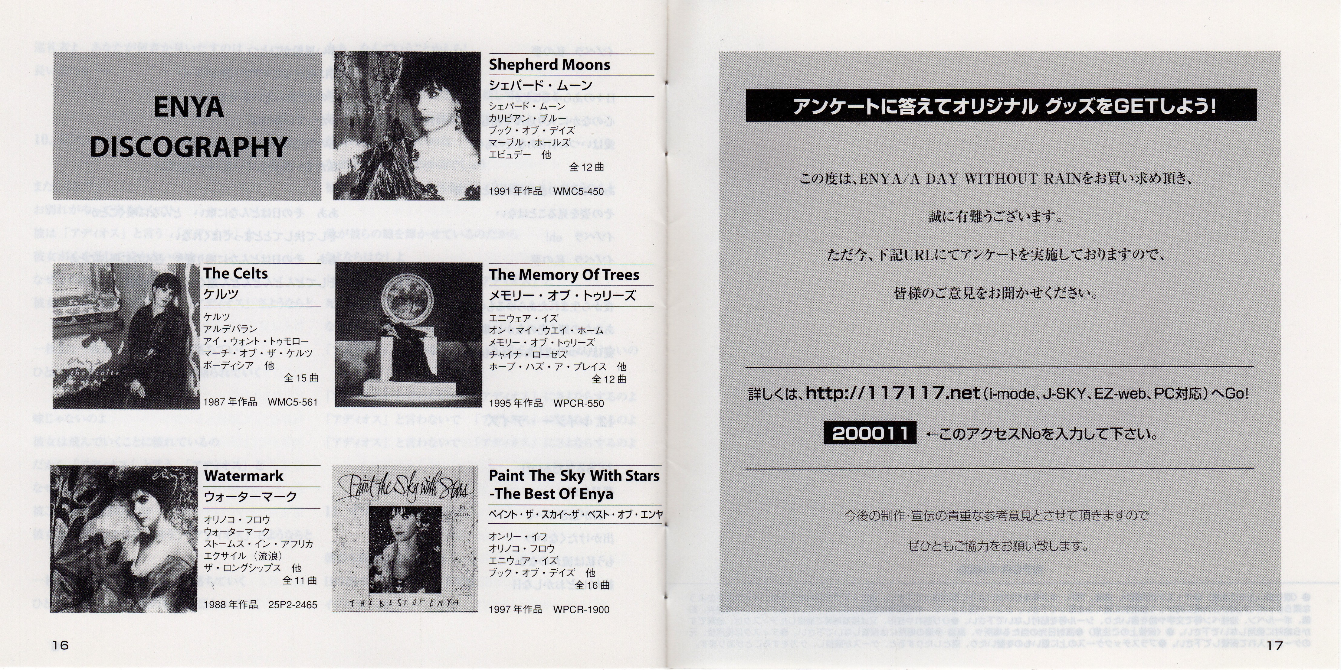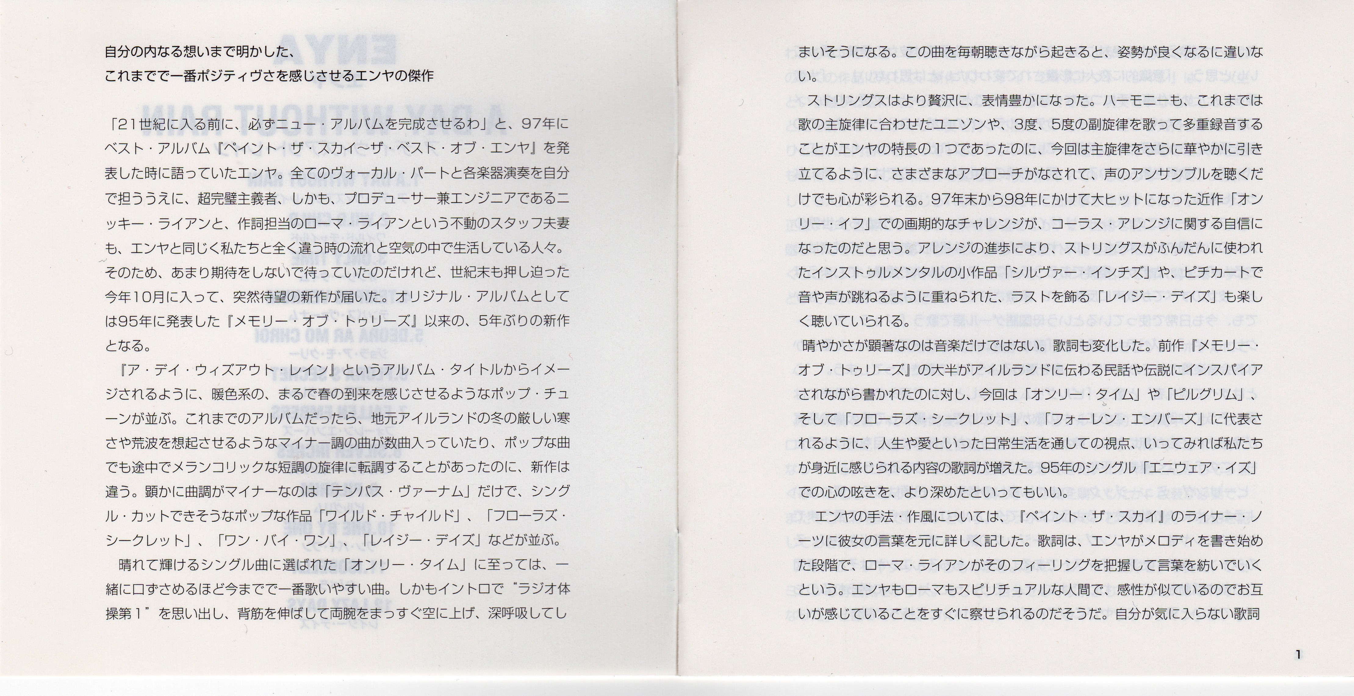 Работу над "A Day Without Rain" Эния начала осенью 1998 года. Вышел в свет альбом спустя два года, 21 ноября 2000.