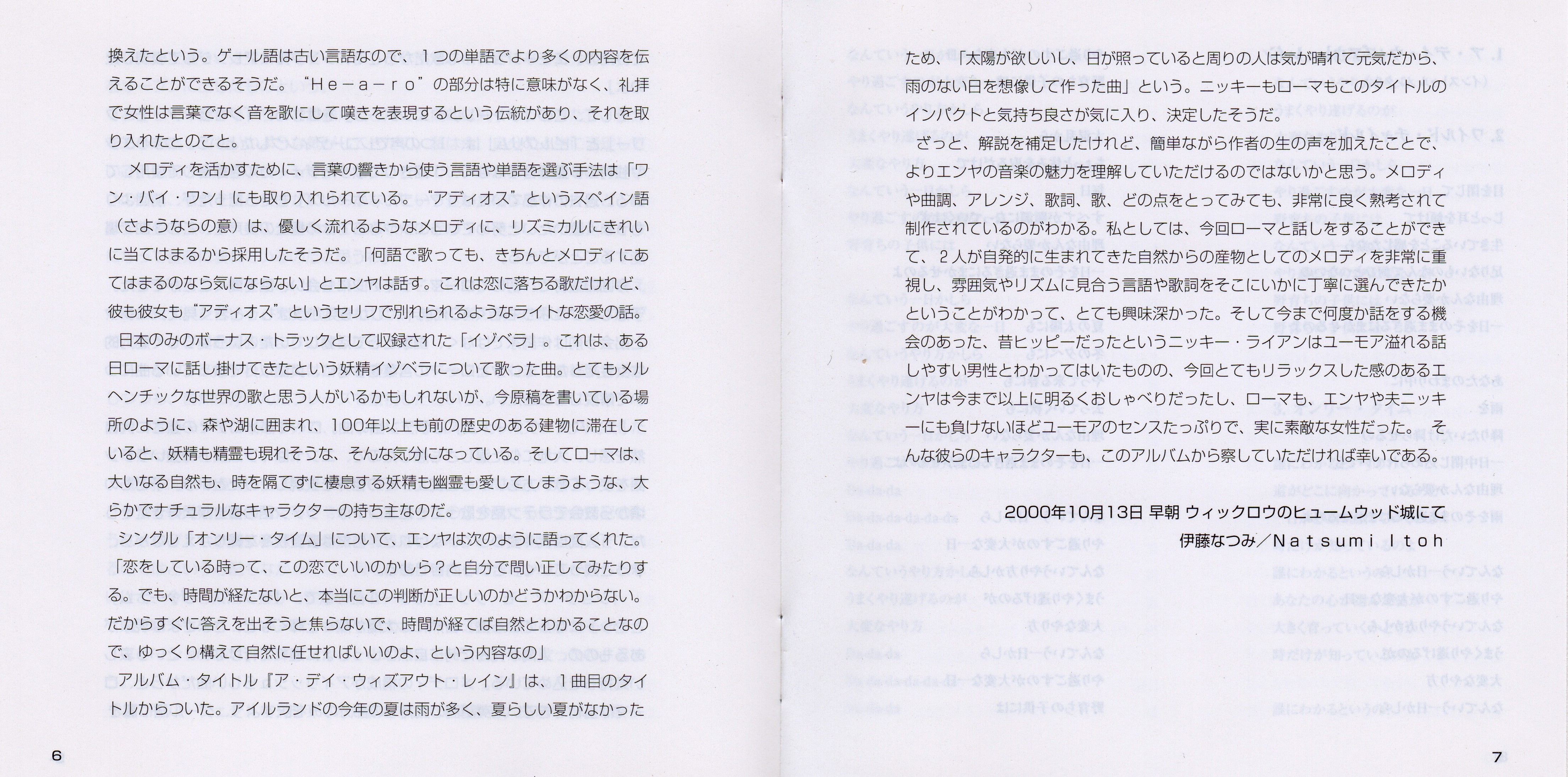 Содержит знаменитую песню "Only Time", имевшую большой успех в 2000 году, а также в 2001, во время террористических атак 11 сентября.