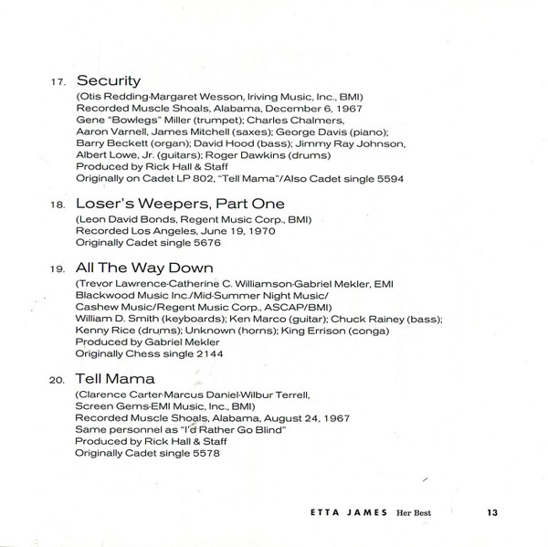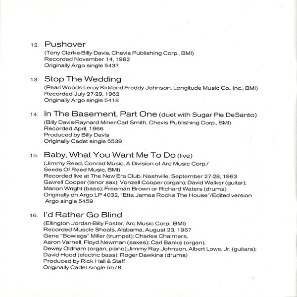 14 Etta James Duet With Sugar Pie DeSanto– In The Basement, Part One2:21