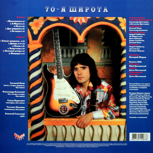 Представляем Вашему вниманию певца, композитора, поэта и музыканта Евгения Осина и его новый альбом «70-я широта». В альбом вошли песни влюблённых романтиков и мечтателей 70-х годов. Почти все эти песни никогда ранее не были записаны на студиях звукозаписи, незвучали на радио и ТВ.