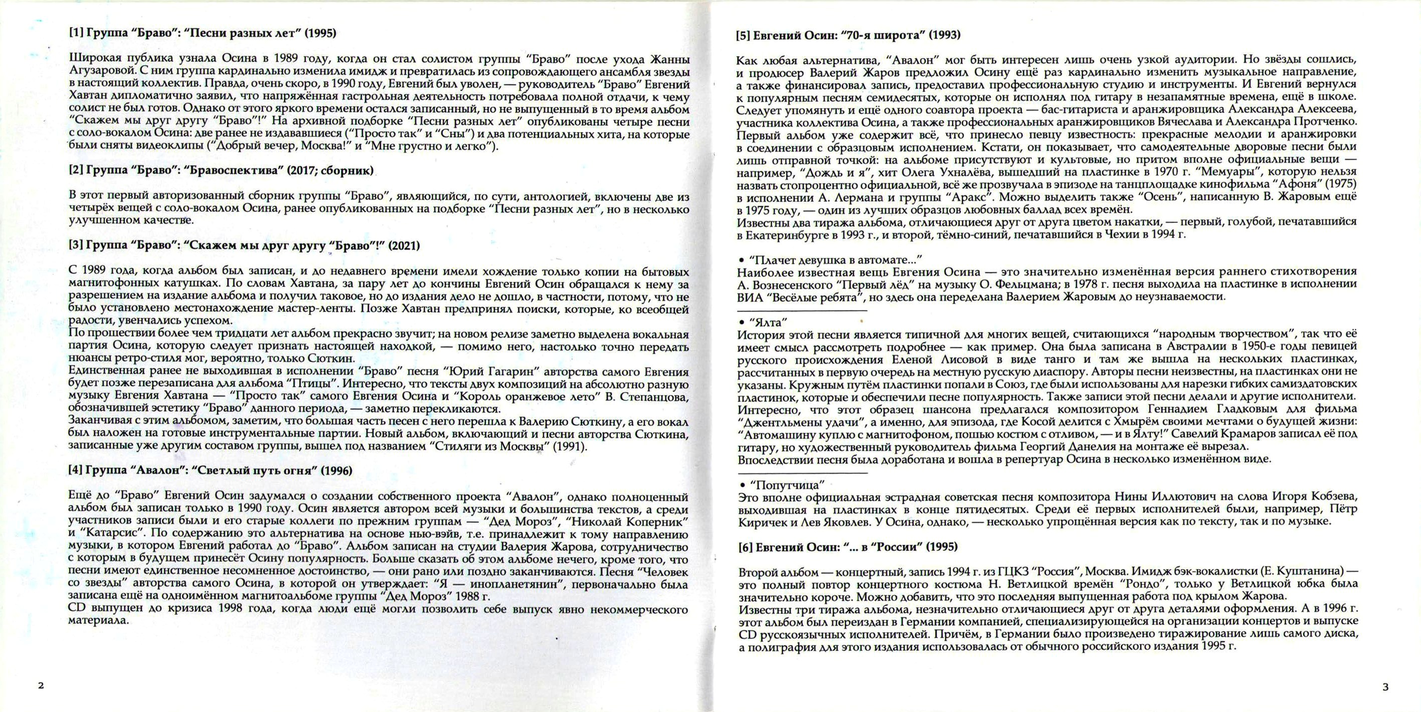 Издание Фан-Клуба Евгения Осина совместно со Swine Records к 30-летию выхода альбома "70-я Широта", 2023
