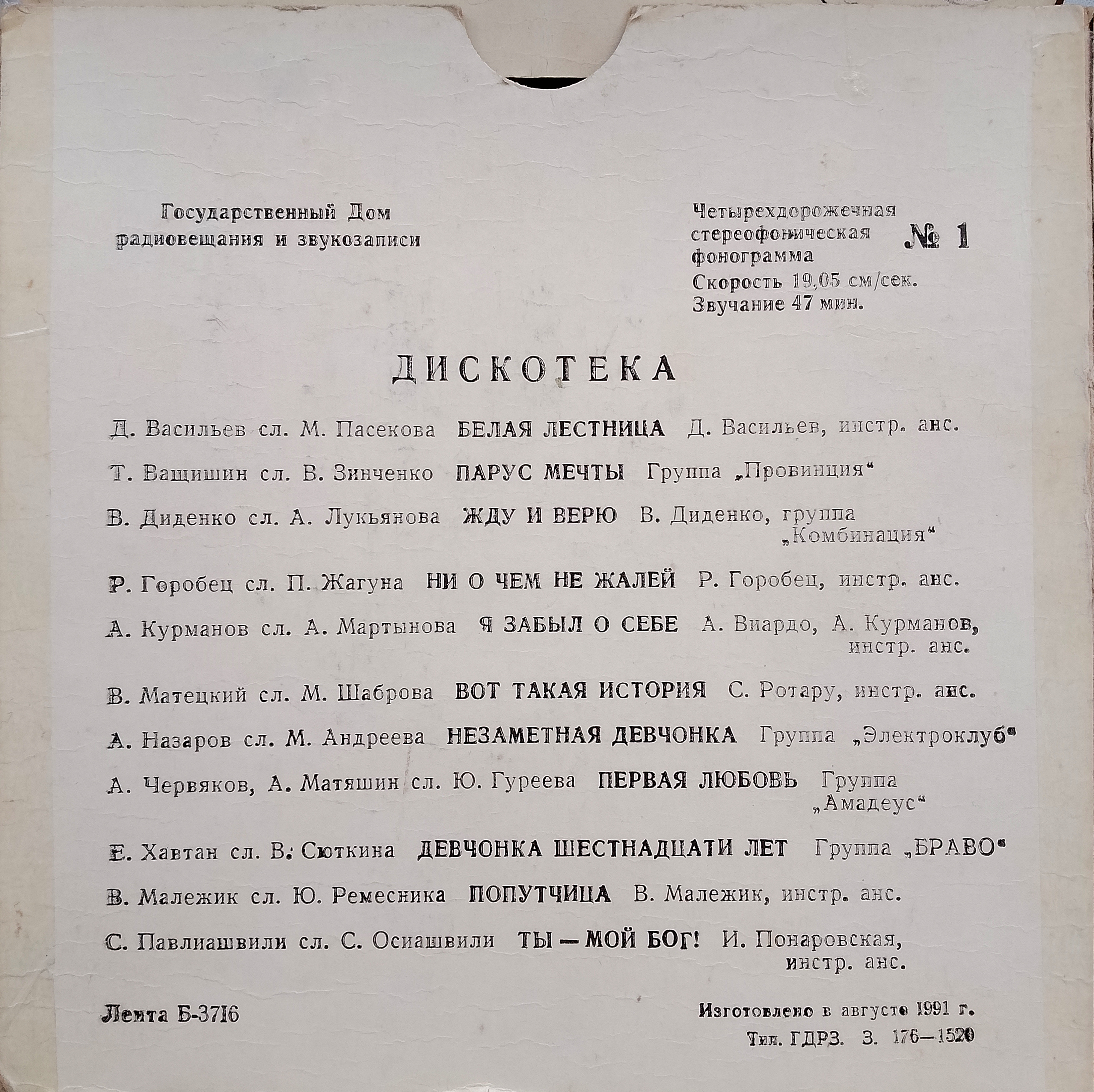 С Августа 1991 года ГДРЗ начинает нумеровать свои фонограммы "снова с единицы".