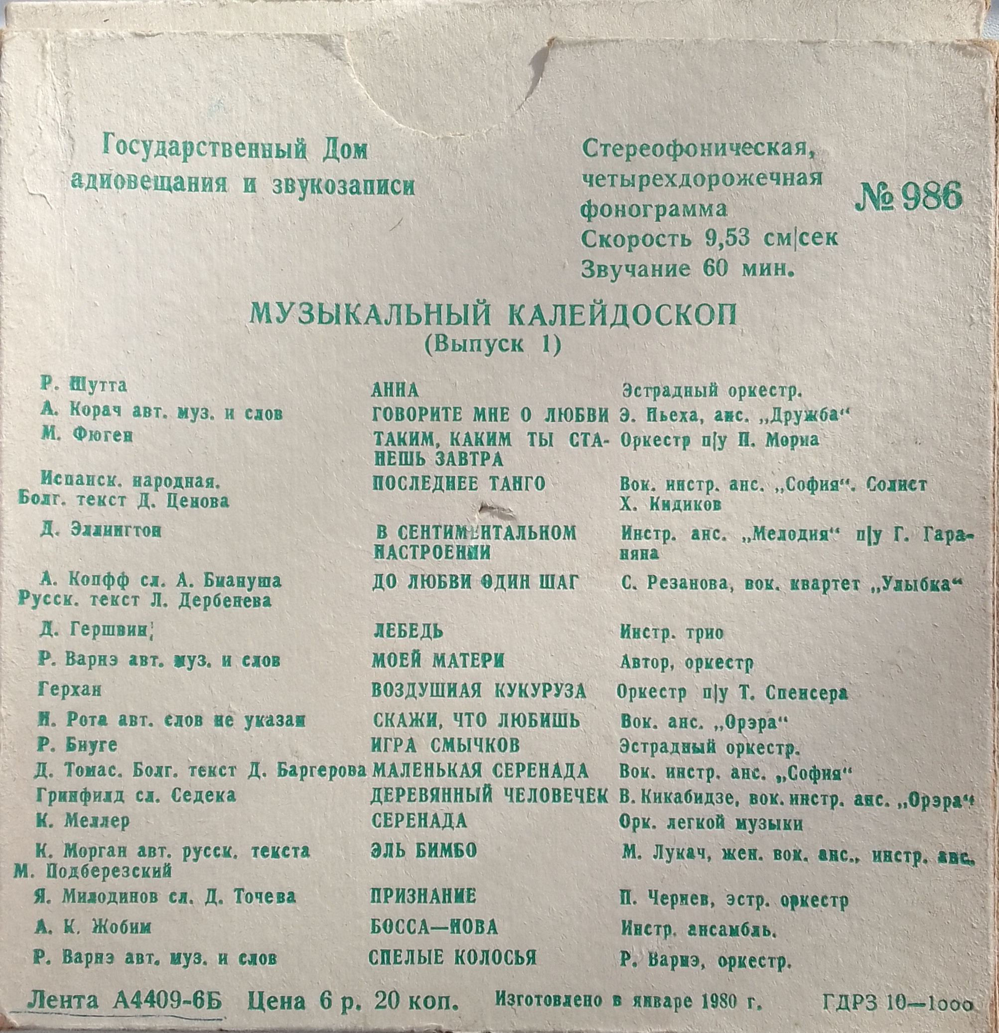 Фонограмма №986 "Музыкальный Калейдоскоп (Первый выпуск).