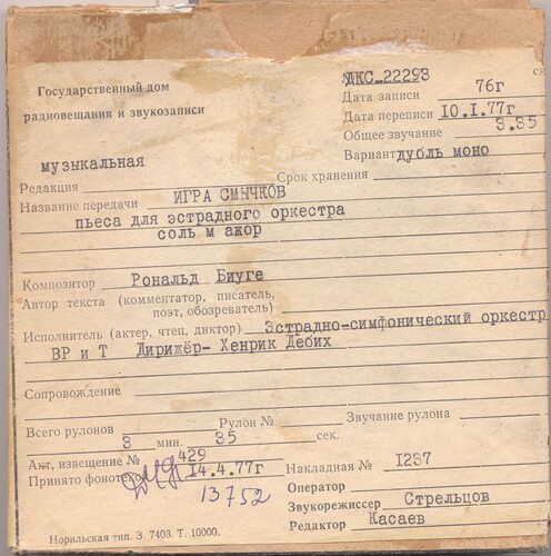 Государственный дом радиовещания и звукозаписи. Москва. Январь 198о года.