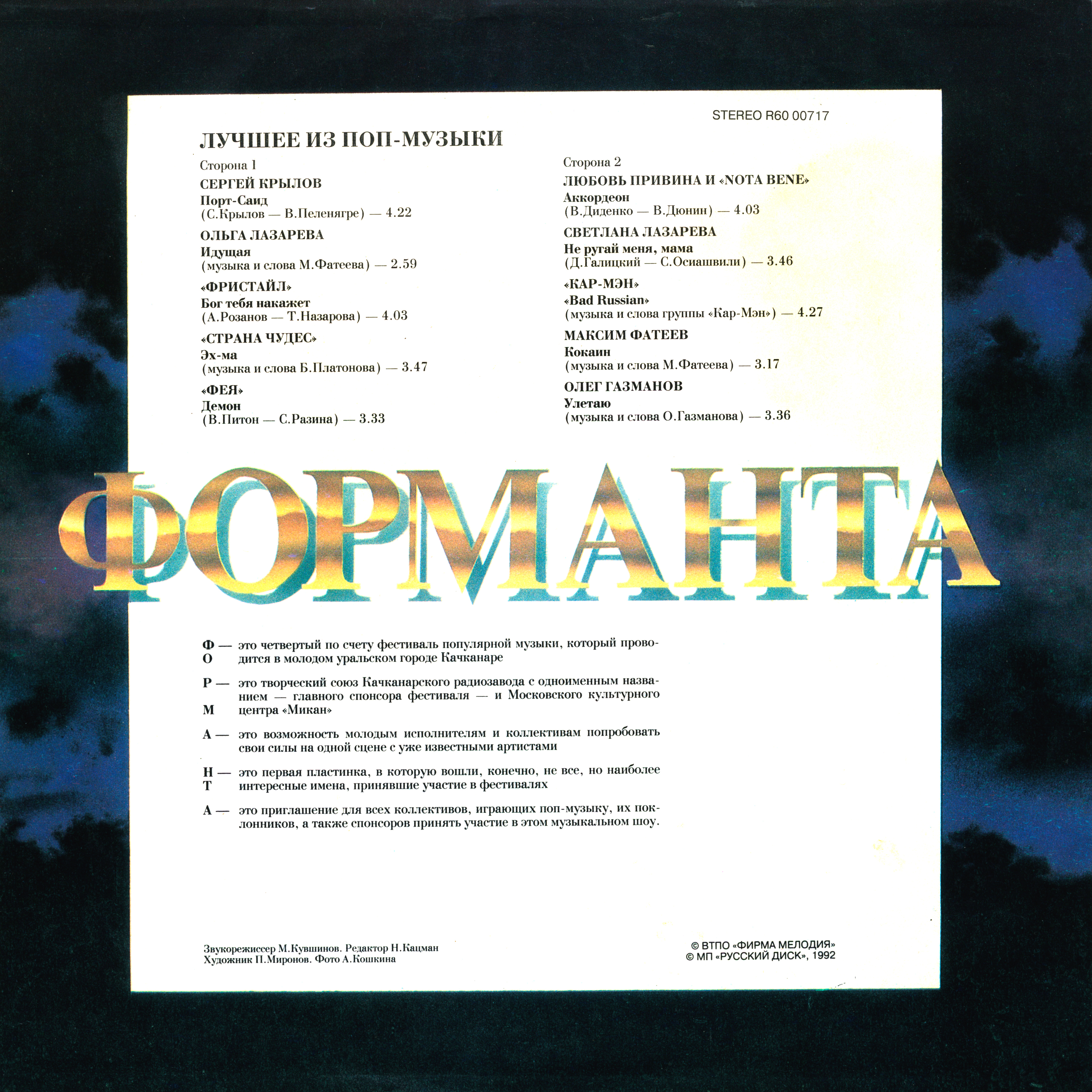 Форманта ~ (1992/1991) VA - Форманта (Лучшее из поп-музыки)