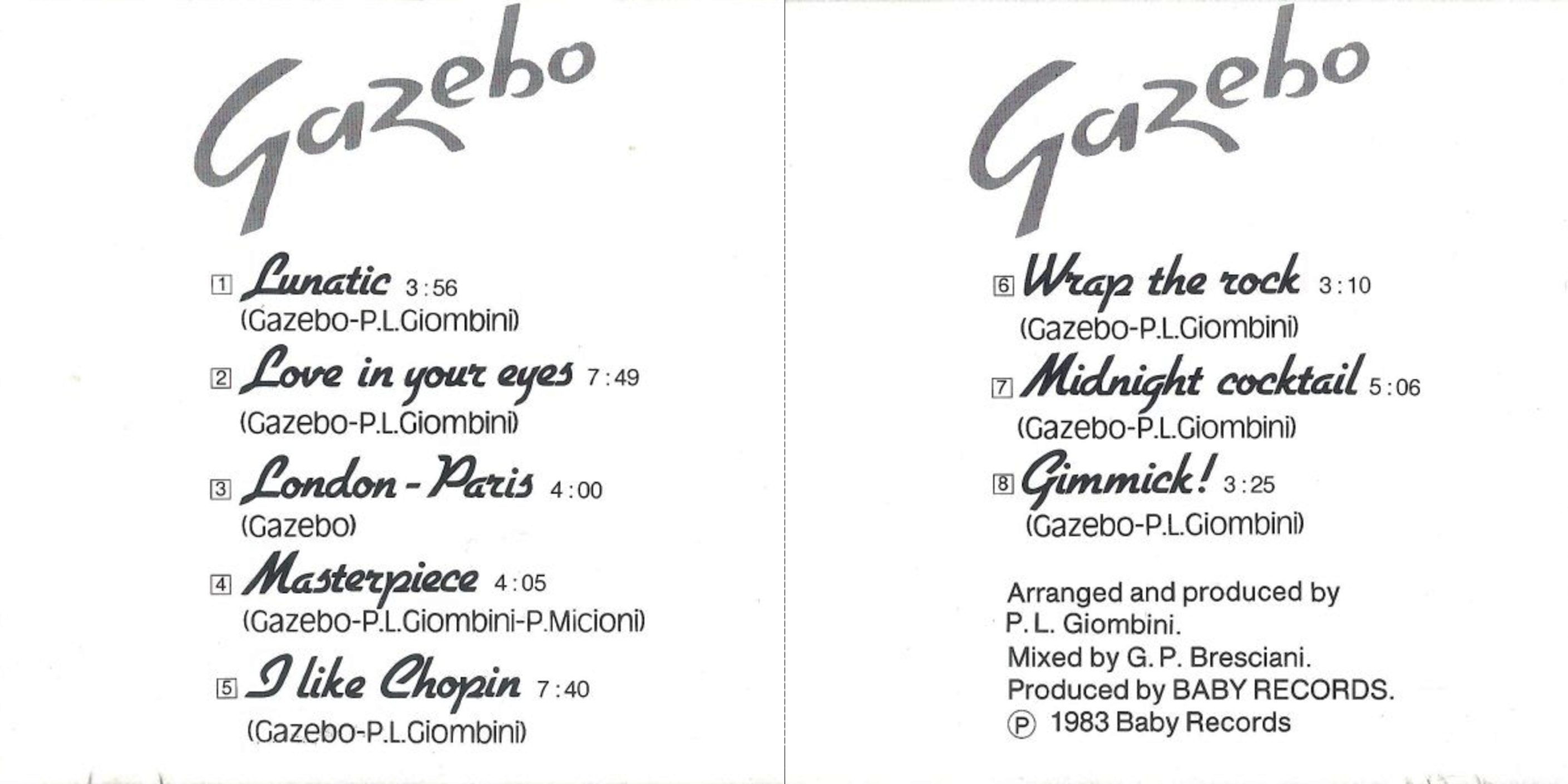 ★ Gazebo is the debut studio album by Italian singer-songwriter Gazebo, released in 1983 by Baby Records.