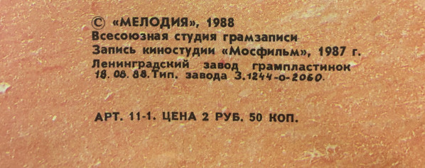 Лейбл: Мелодия – С60 26961 000