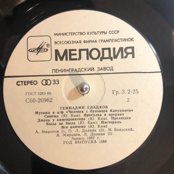 Геннадий Гладков – Музыка К Кинофильму «Человек С Бульвара Капуцинов» (1988)