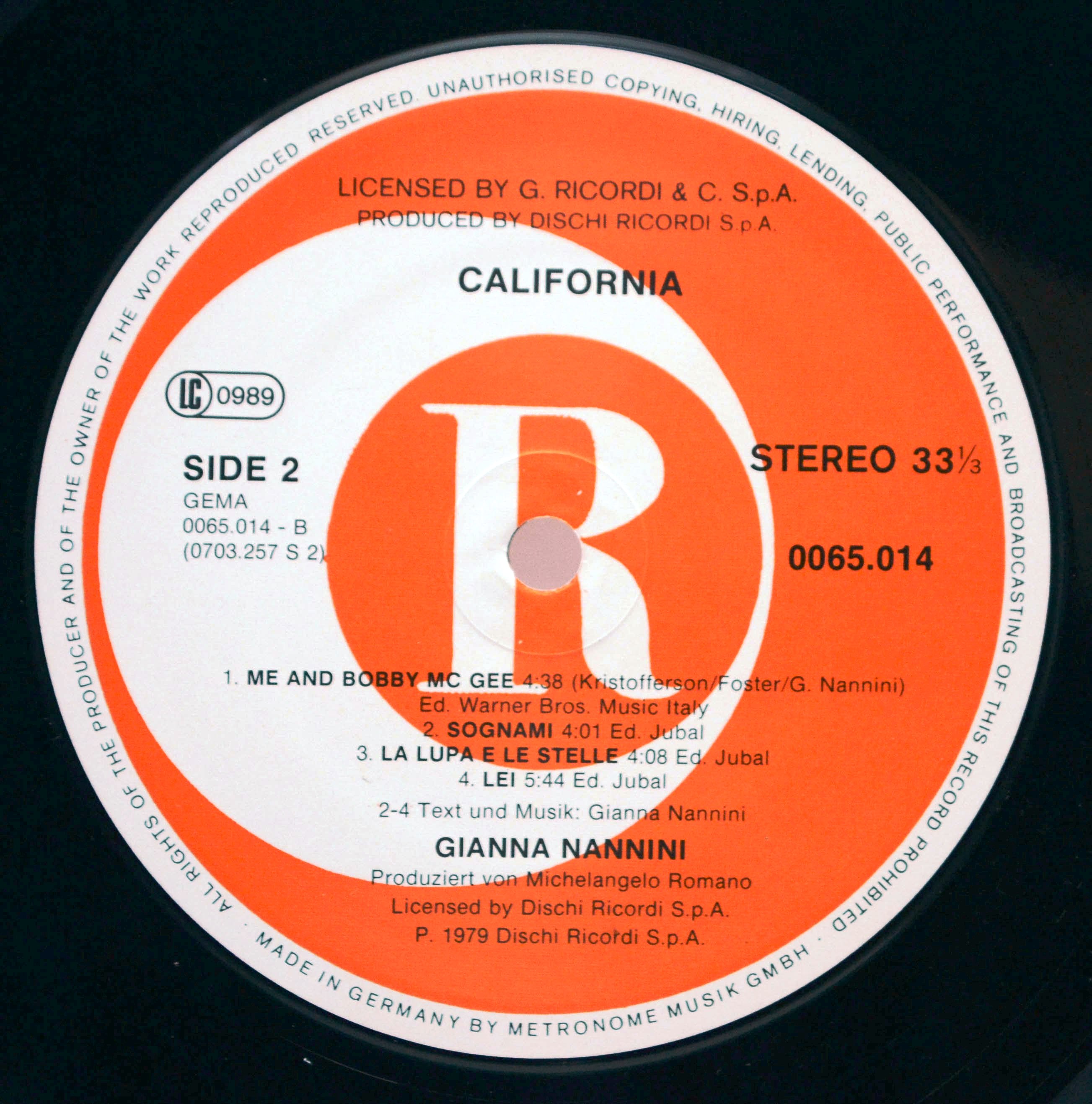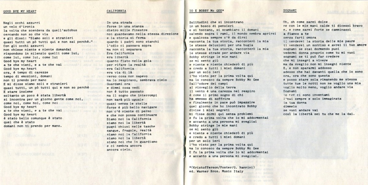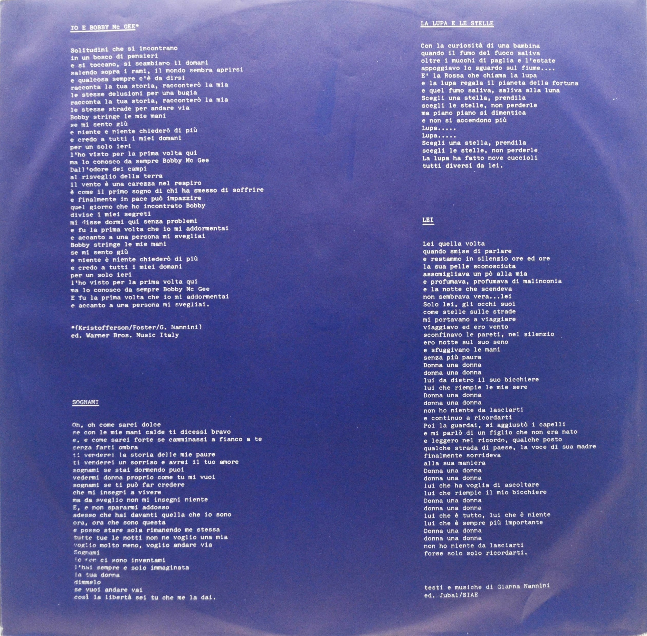 Written-By – Foster, G.Nannini, Kristofferson (Cover version of "Me and Bobby McGee") (Kris Kristofferson / Fred Foster / Gianna Nannini) (В1)