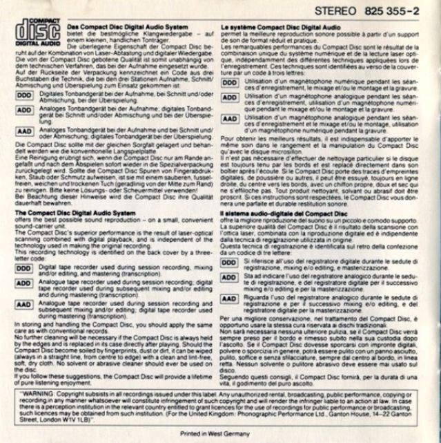 Предлагаю вашему внимаю сканы переиздания этого альбома на CD (Metronome MO 825 355-2). Год переиздания отсутствует.