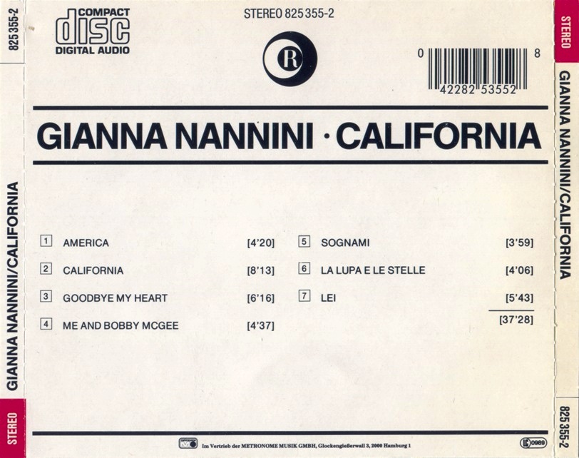 California - третий альбом Джанны Наннини, выпущенный в 1979 году. Альбом ознаменовал решающий прыжок Наннини в рок и включал её первый хит "America", который сделал её известной в Германии и Северной Европе.