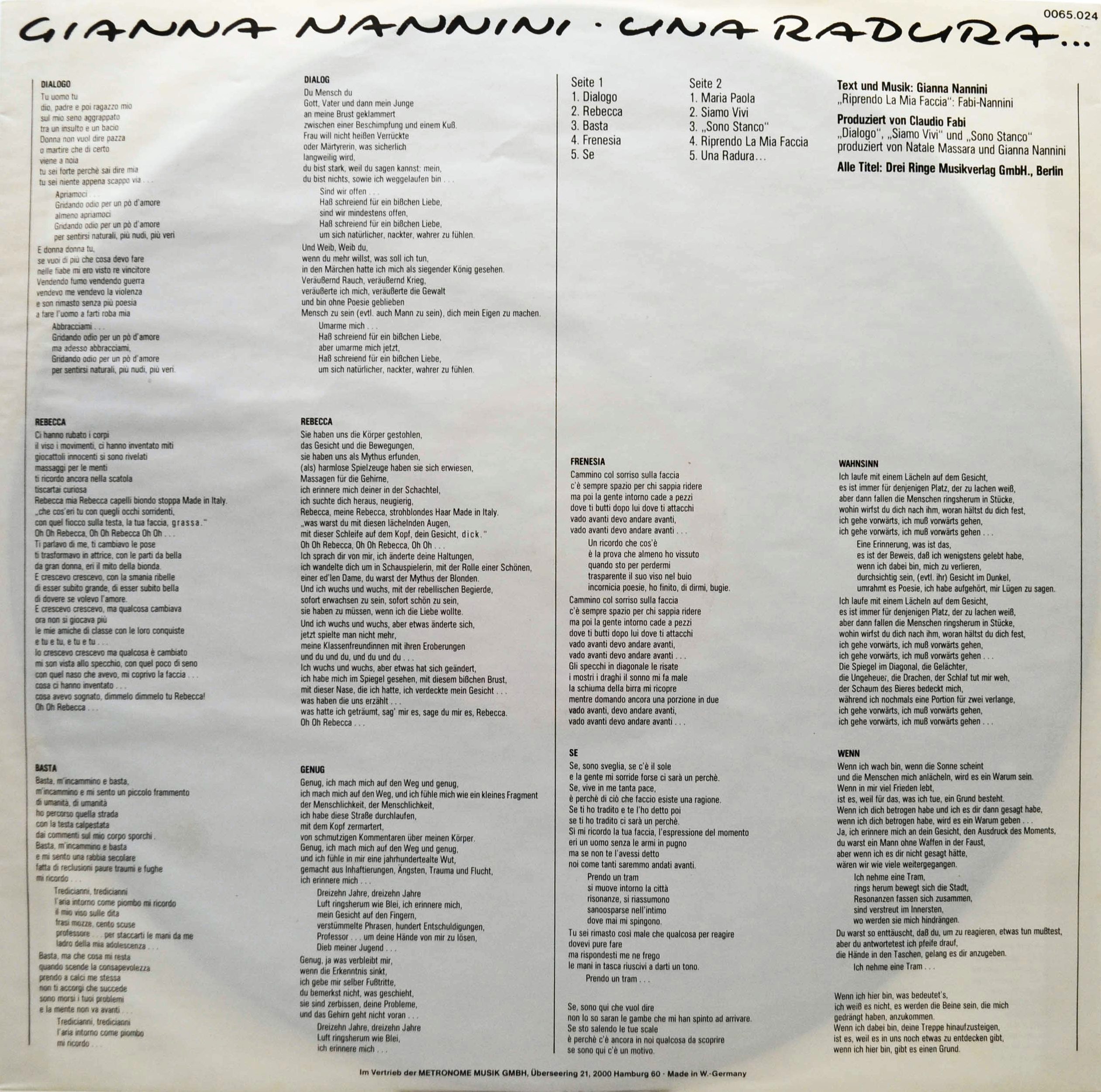 This release is similar to alternative release Gianna Nannini - Una Radura ... but without "PRS Hannover" embossing on back cover.