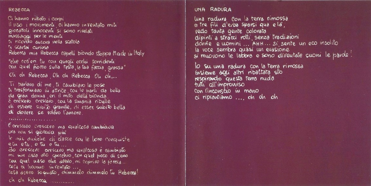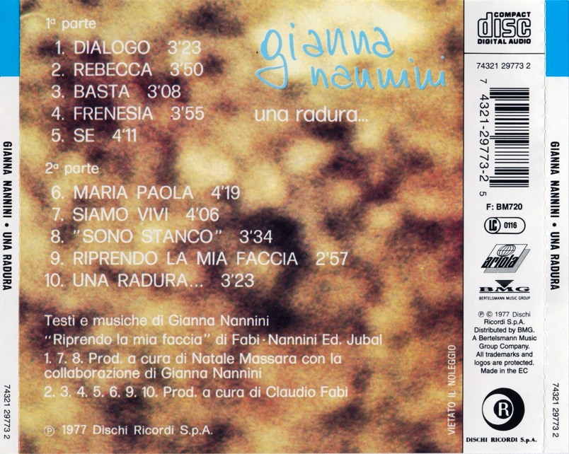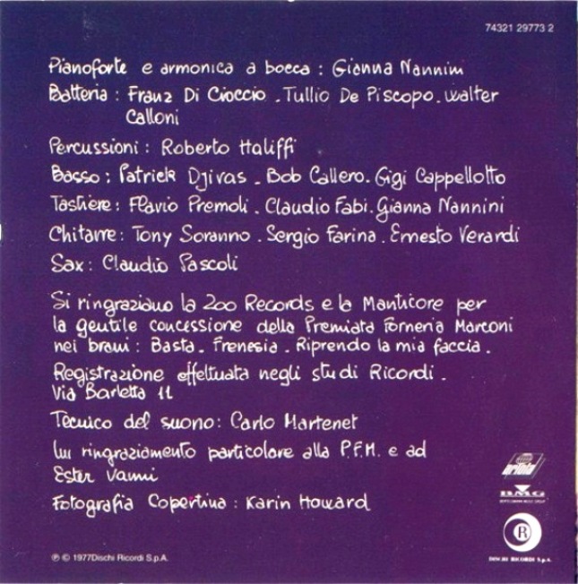 Предлагаю вашему внимаю сканы переиздания этого альбома на CD (Dischi Ricordi S.p.A. 74321 29773 2). Год переиздания отсутствует.