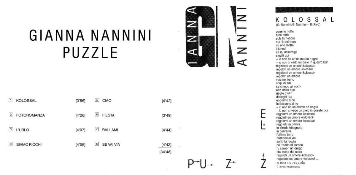 Puzzle — шестой альбом Джианны Наннини. Он был выпущен в 1984 году. Первый сингл с альбома "Fotoromanza" стал летним хитом и получил награды Festivalbar, Vota la Voce и Gold Telegatto Award. Режиссером клипа выступил Микеланджело Антониони. Альбом стал платиновым в Италии, а "Fotoromanza" возглавила чарты Италии, Швейцарии и Австрии. Европейский тур по продвижению альбома завершился несколькими очень успешными выступлениями в Берлине, на джазовом фестивале в Монтре и в Кельне, результатом которых стал альбом Tutto Live (1985).