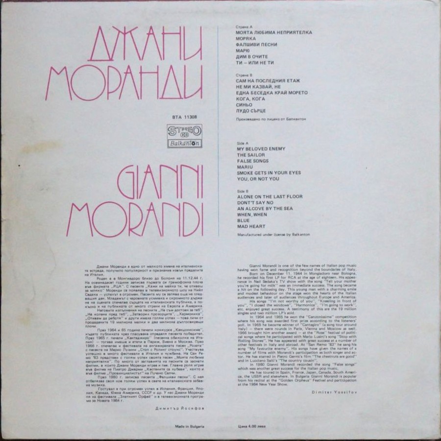 Джани Моранди е едно от малкото имена на италианската естрада, получило популярност и признание извън пределите на Италия.