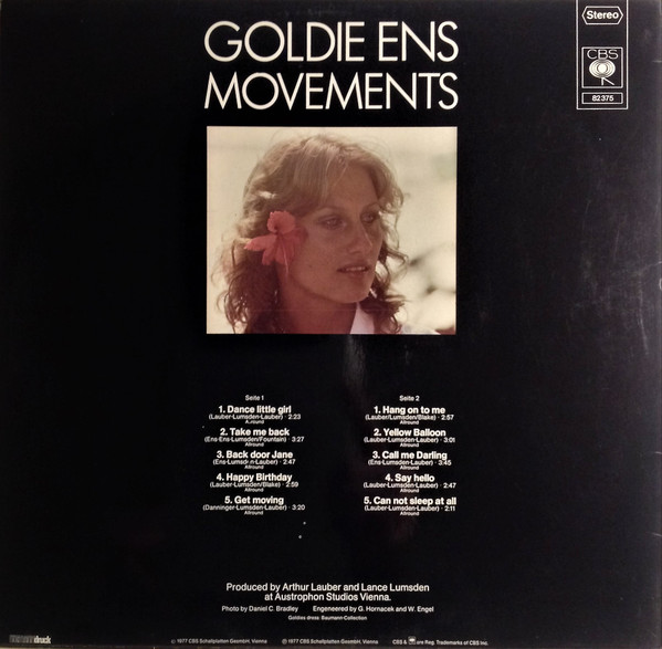 •На волне успеха дебютного альбома „Night-Express 10.30“ (1975) и прошлогоднего сингла „Disco Baby (Casanova)“, попавшего в австрийские чарты на 18-е место, Голди Энс выпустила второй и последний лонгплэй на CBS и вообще в своей стране в 70-х. Новая пластинка хоть и была записана в аналогичном стиле, как и предыдущая, но всё же заметно отличалась и общим звучанием, и аранжировками. Здесь уже приближалось влияние „диско“, недавно заявившее о себе в Европе. Синглы „Get Moving“ и „Hang On To Me“, вошедшие в альбом, в чарты не попадали. Однако и успешный сингл „Disco Baby“ в альбом почему-то не включён и, как по мне, здесь его явно не хватает. Поэтому 2 песни добавляю в виде бонуса специально для данного поста.