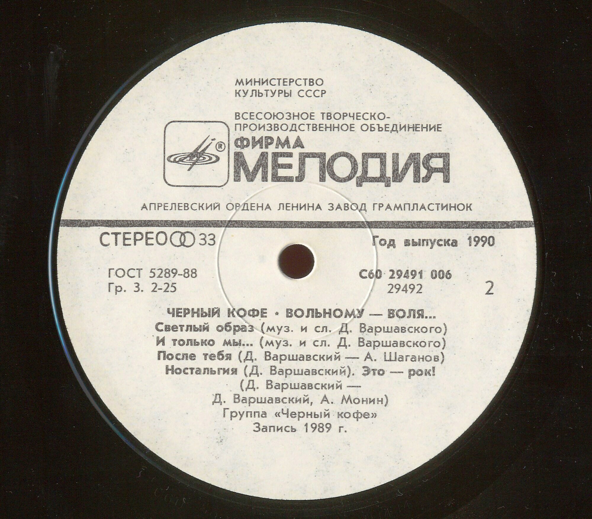 гр.«Чёрный Кофе» ~ (1990/1989) Вольному-воля...