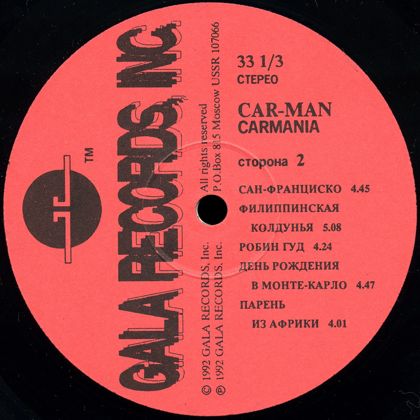 Ⓒ 1992 GALA RECORDS, Inc.