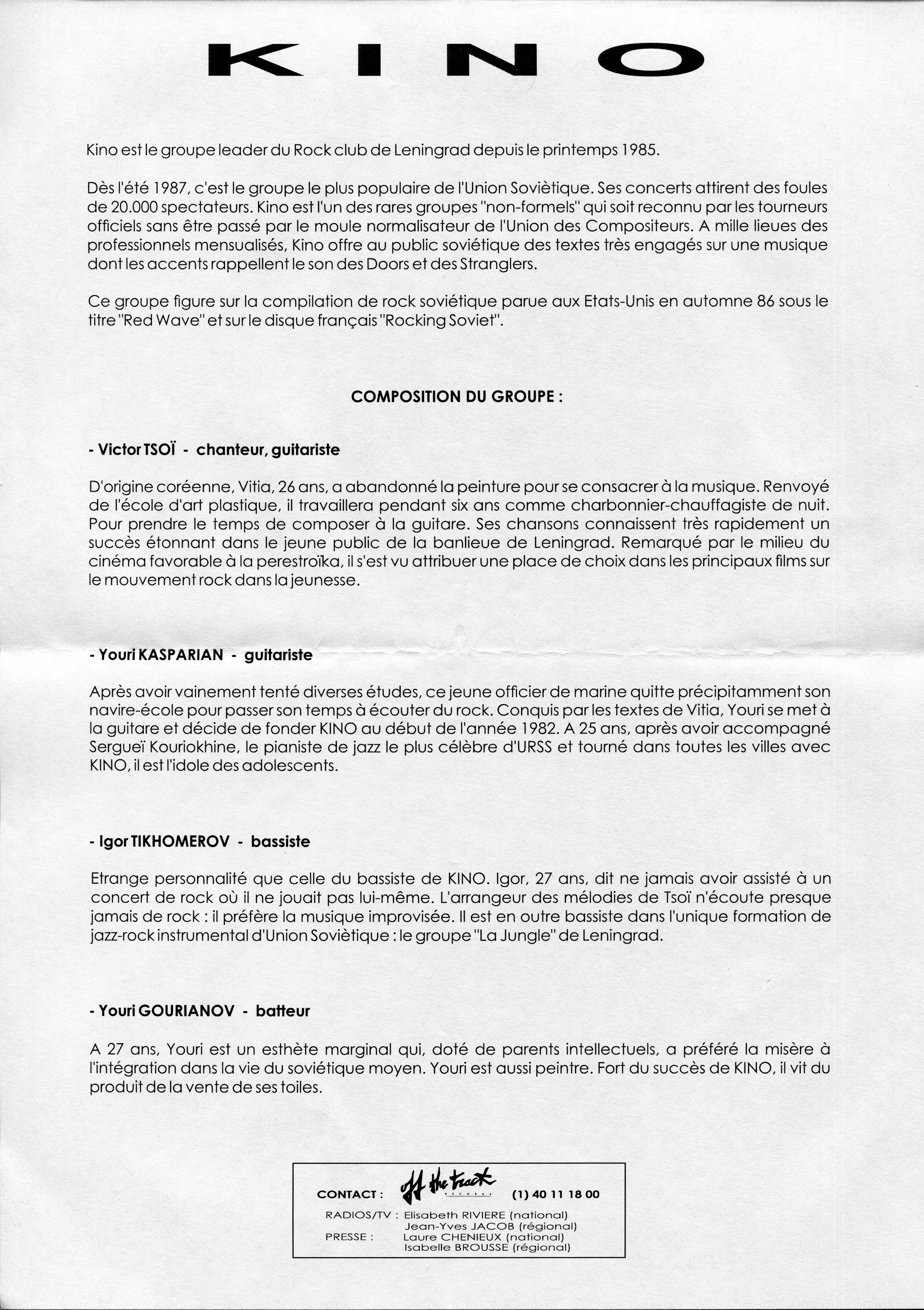 К публикации прилагается рекламный проспект на французком языке (реплика) с информацией об группе и составе группы.