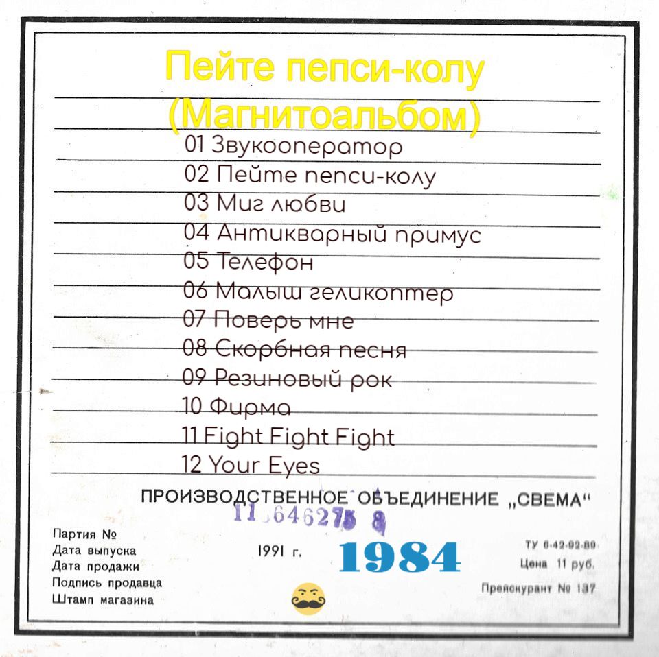 гр.«Примус» ~ (1984) Пейте пепси-колу (Магнитоальбом)